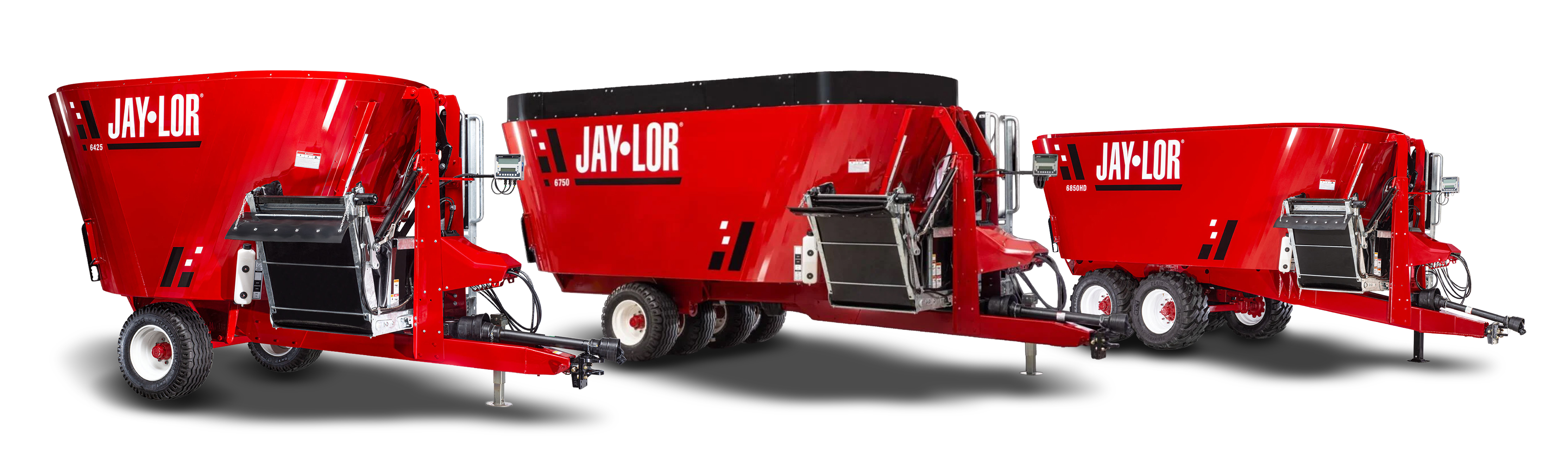 Our range of feed mixers consists of the well-established and trusted Jaylor brand. From the compact 5050 Mini Mixer built for small herds, to the single-auger 6425 designed for mid-size farms, and the double-auger 6000 Series mixers for larger operations.
