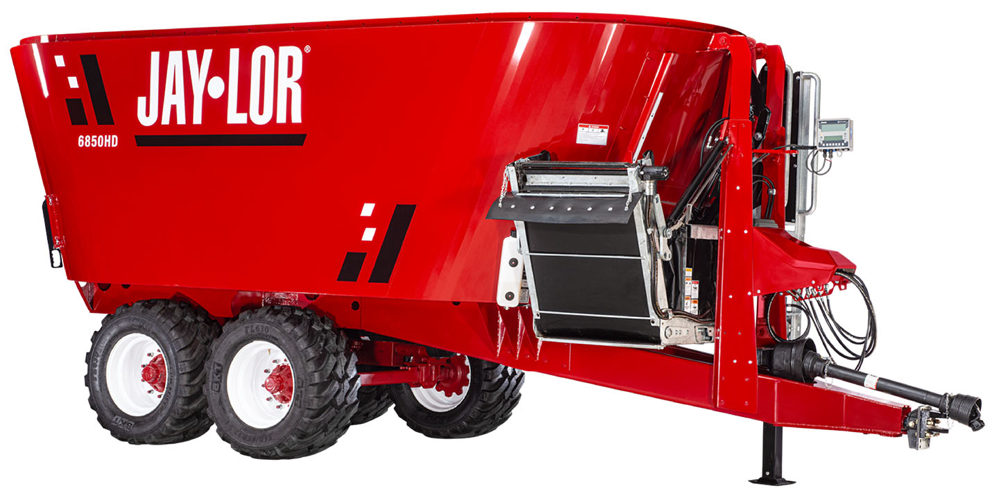 The Jaylor 6850HD Twin Auger TMR Mixer is built for demanding commercial feeding operations, engineered to withstand continuous, all-day use with exceptional durability. Designed for large-scale production, it can process up to two 5×6 or four 4×5 round bales per load, handling approximately 1,740 kg of hay equivalent with ease.