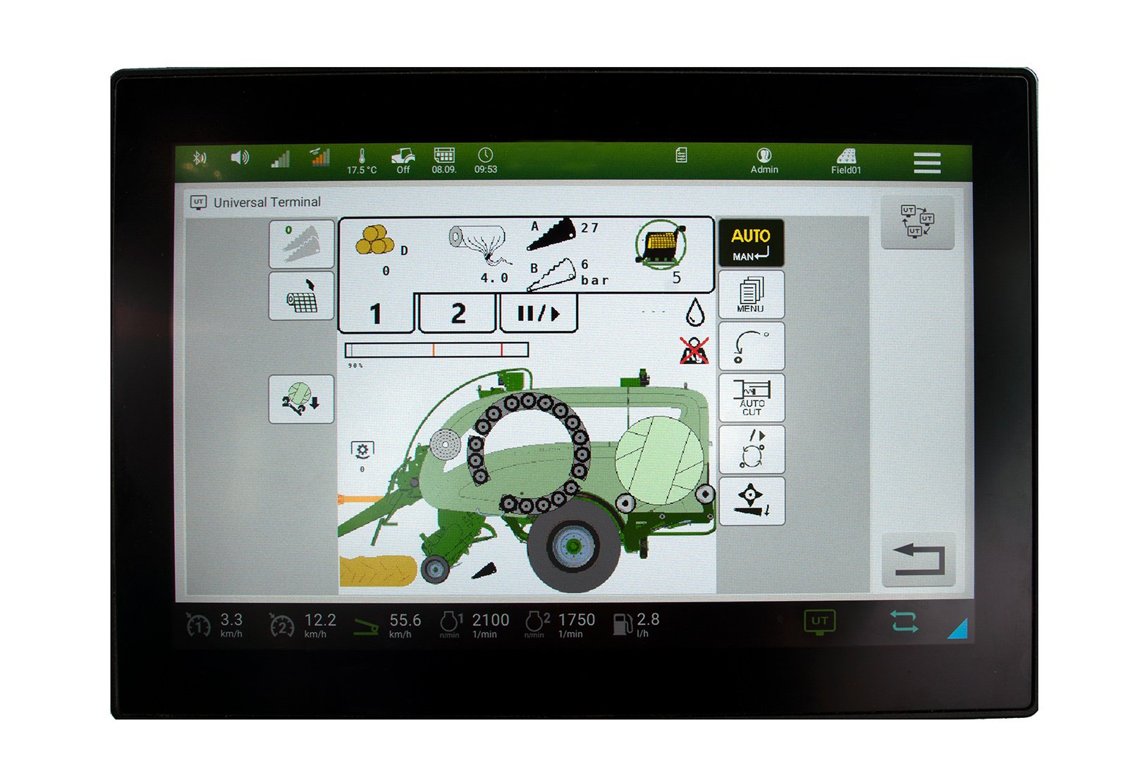 The McHale Fusion Vario Plus is fitted with ISOBUS as standard. For customers without an ISOBUS tractor, an optional ISO-PLAY 7 or ISO-PLAY 12 terminal can be used. Through the ISOBUS tractor’s terminal or McHale’s ISO-PLAY terminals, the operator is provided with clear indicators of machine performance and allows for increased levels of monitoring, through the graphic display.