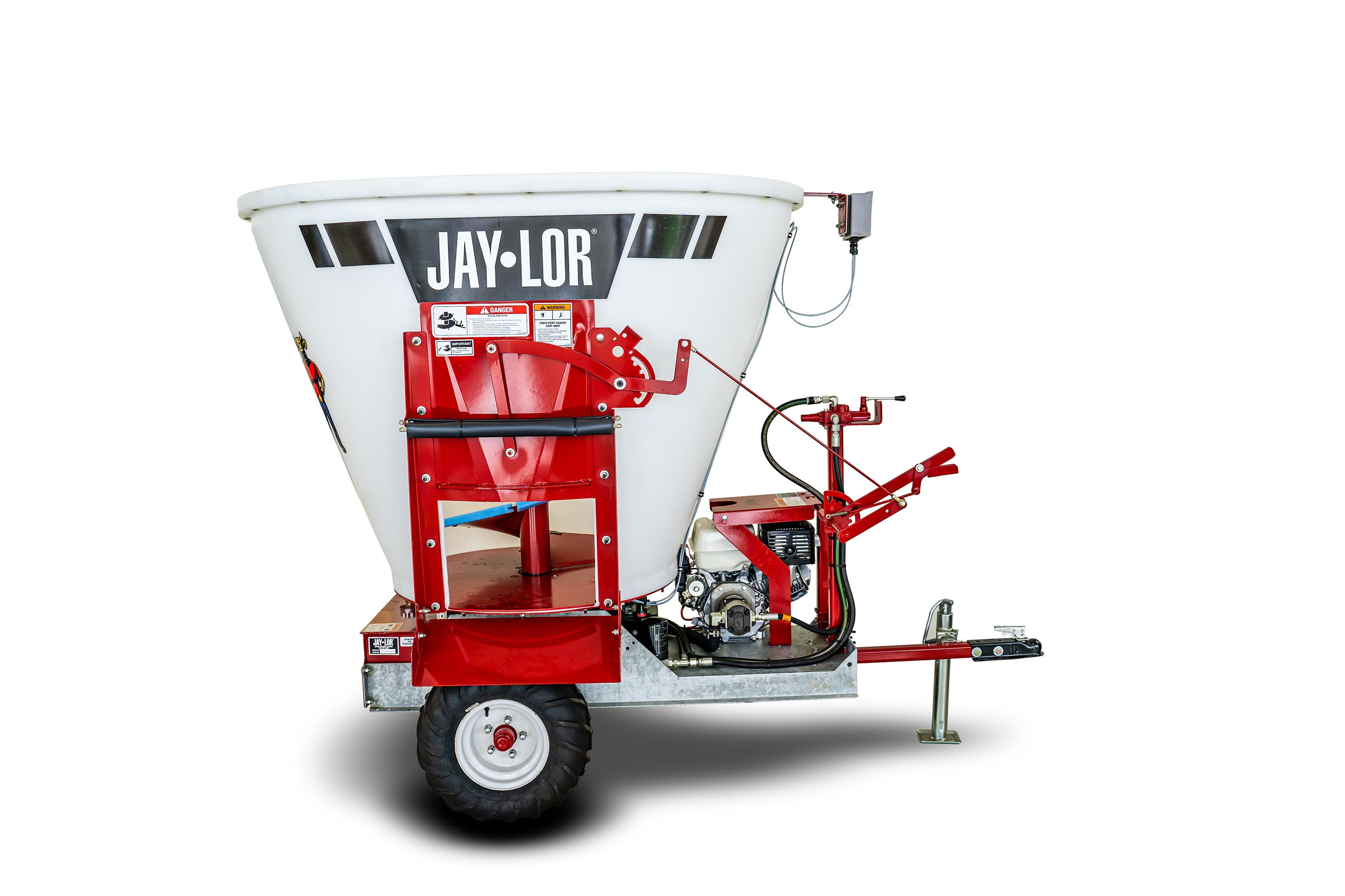The mini series is designed to be able to process small hay bales, forages and other ingredients, then cut and mix a consistent, nutritious TMR. The mini mixers are built with the same ruggedness and durability as the rest of the Jaylor product line. A reliable industrial Briggs and Stratton Vanguard engine powers the mini mixer.