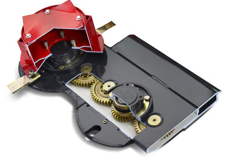 - The long curved gear wheels running in oil provides a very quiet and reliable power transmission.