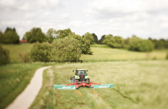 Kverneland 5095 M is the perfect machine for the ever growing number of cattle farmers looking for an effective solution enabling them to mow extensive areas with a relatively small tractor. Designed to match the needs of large-scale mowing, these machines are packed with features to meet all demands. The centre suspended mowing units, in combination with the round discs, offer unmatched mowing performance.