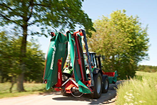 - When turning on headlands the hydraulic cylinder, which is also used when going into transport position, ensures ample clearance to the swath, so they remain undamaged.