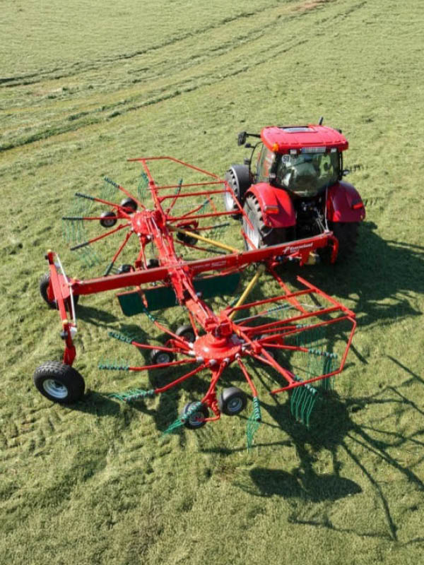 Built on solid, stable frames, these machines combine durability with ease of operation, featuring hydraulically adjustable working and swath widths, actively steered or flexible wheel systems, and transport solutions that minimise height for safe and convenient road travel. Heavy-duty models incorporate robust carrier frames, high-performance gearboxes, and advanced driveline designs to protect against PTO misuse, while features such as individual rotor lifting, simple lift arm suspension, and optional electric height adjustment enhance flexibility and efficiency. Overall, these rakes are engineered to deliver strong crop turning performance with minimal maintenance and maximum adaptability across varying terrains.