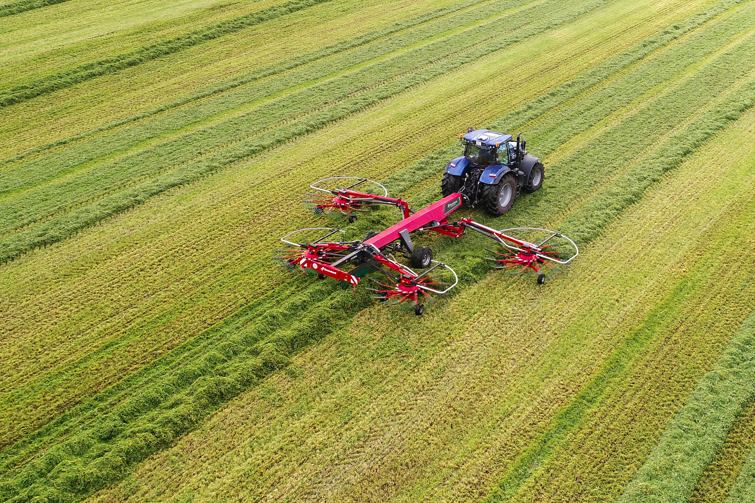 Kverneland four-rotor rakes, including the 95130 C Plus ProLine, are built for New Zealand contractors and large-scale farmers tackling heavy crops in demanding conditions. With hydraulically adjustable working widths from 10.0–12.5 m and swath widths from 1.2–2.2 m, they offer outstanding flexibility and capacity. The maintenance-free TerraLink Quattro suspension system ensures excellent ground following for clean, consistent windrows. With simple control box operation and transport height under 4.0 m without removing tine arms, they’re practical, efficient and road-ready for NZ operations.