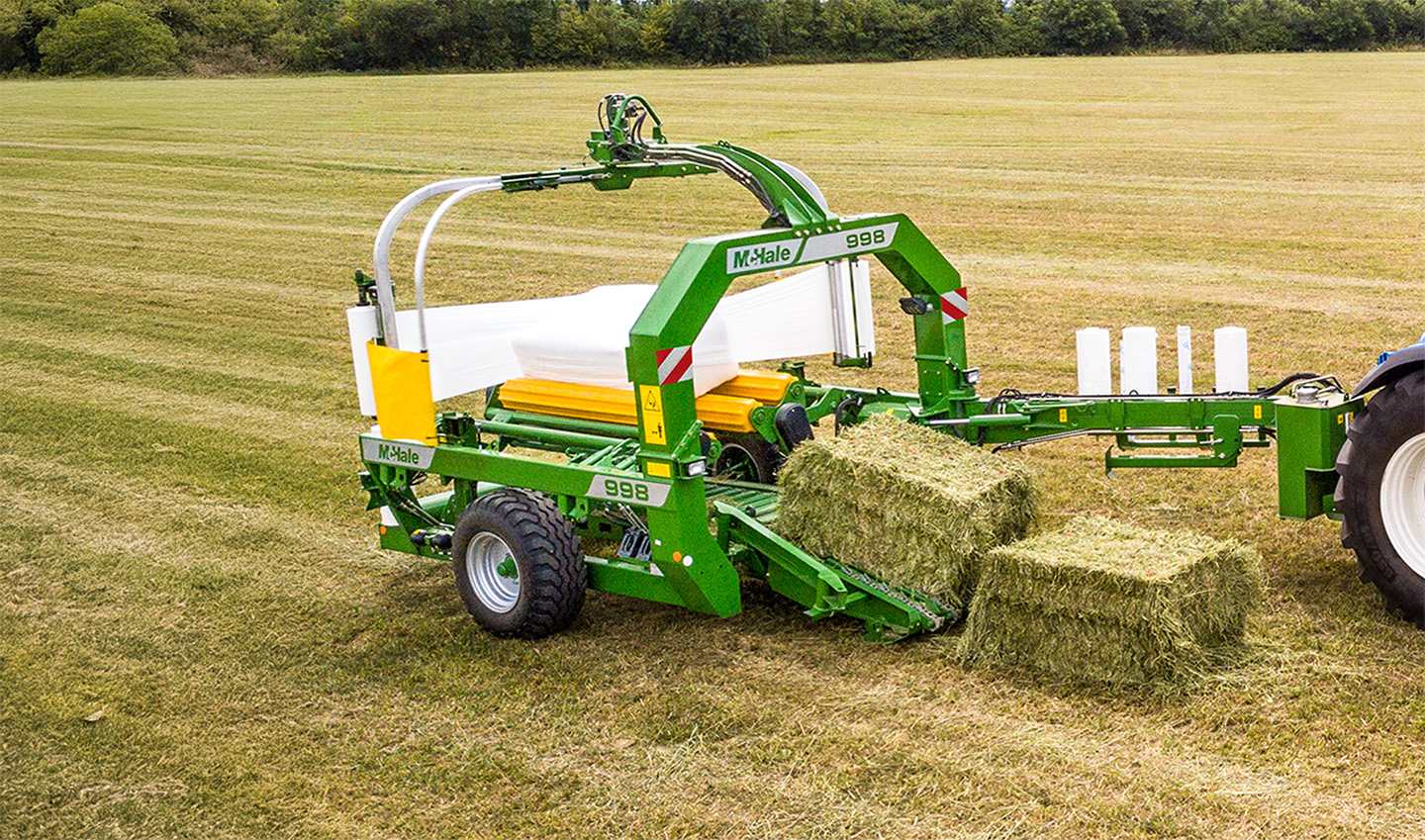 The McHale 998 square bale wrapper is the versatile high output solution for wrapping square bales.