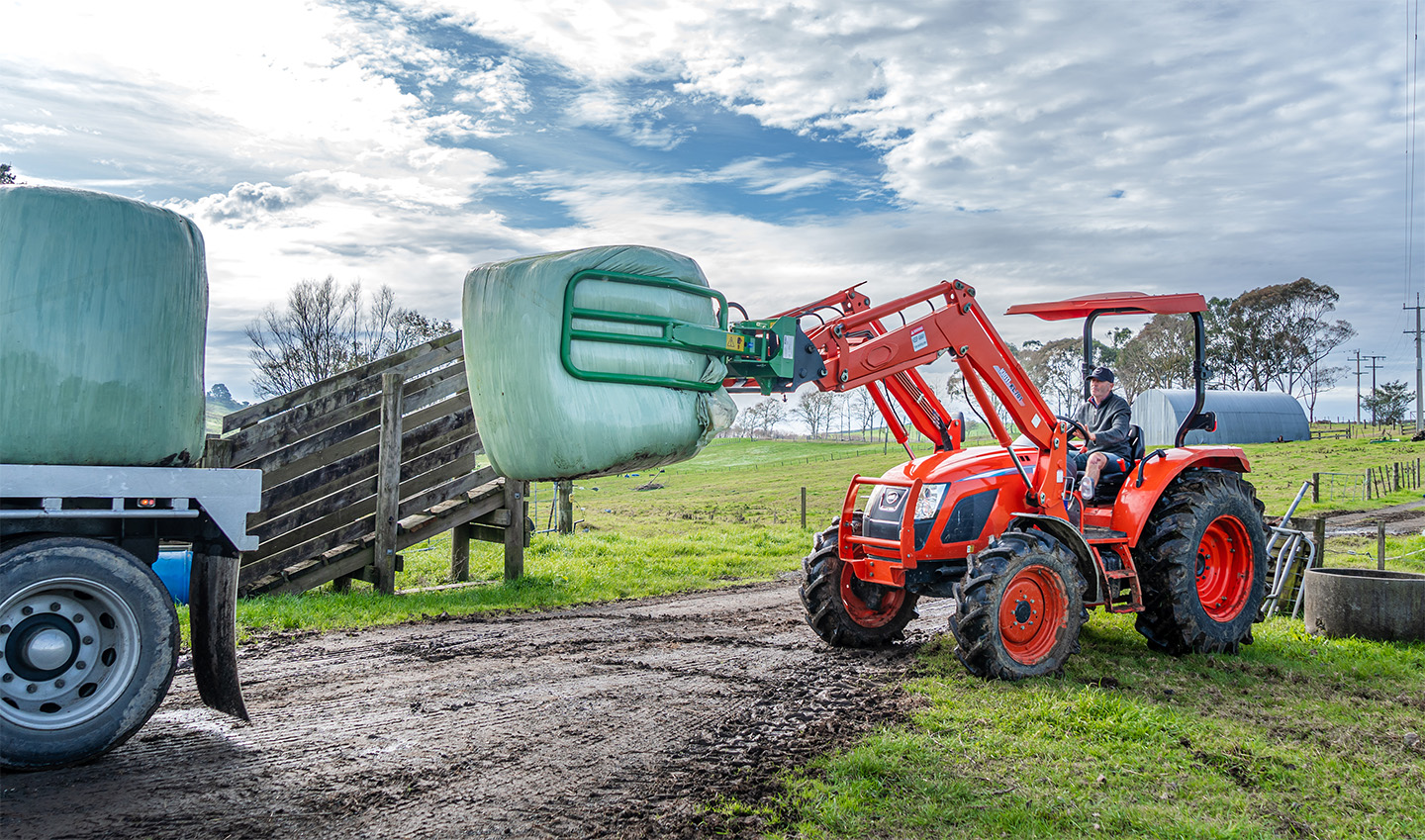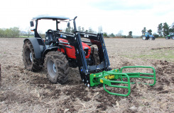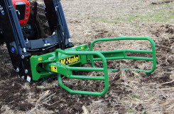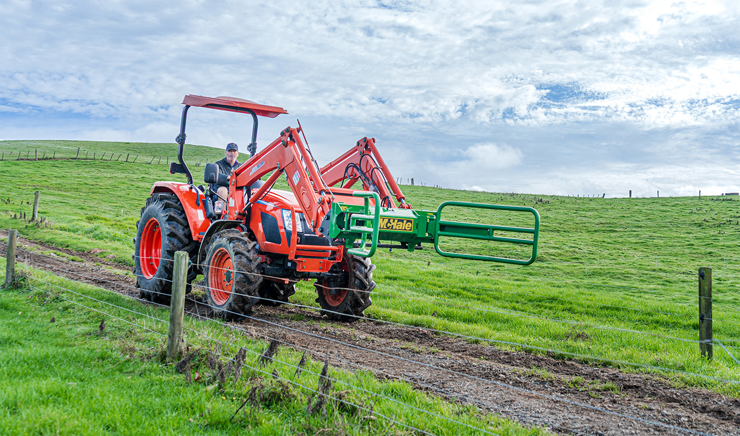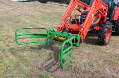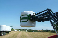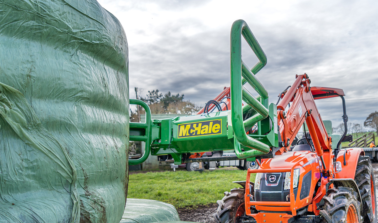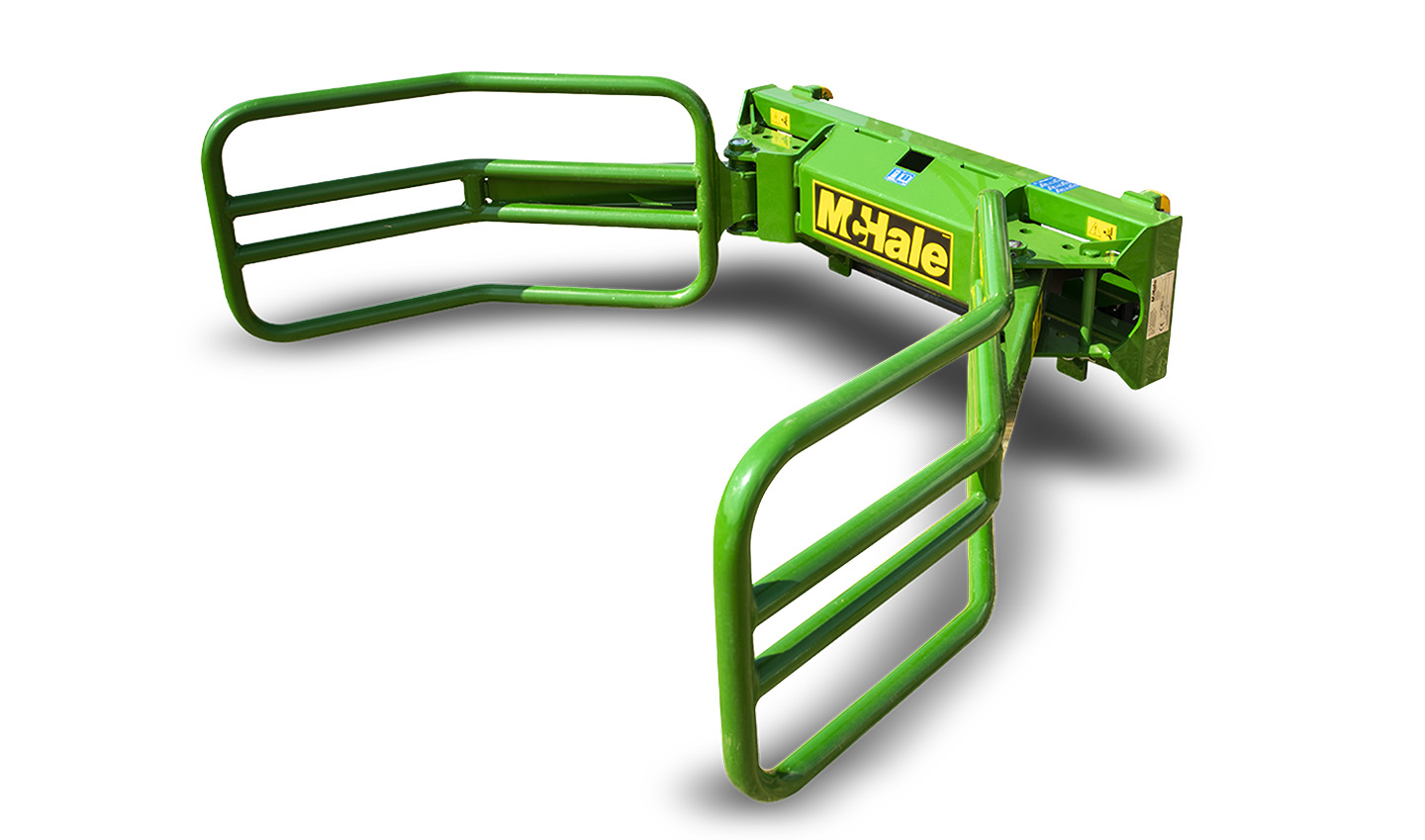 The McHale R5 round bale handler is ideal for collecting round bales, which have been tipped on their ends in the field.