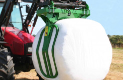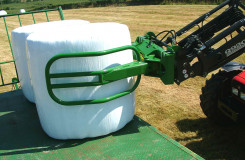 The McHale R5 Round Bale Handler can also be used to collect round bales, which have been left normally after a baler and rotate them through 90 degrees and stack them on their ends so that they hold their shape better.