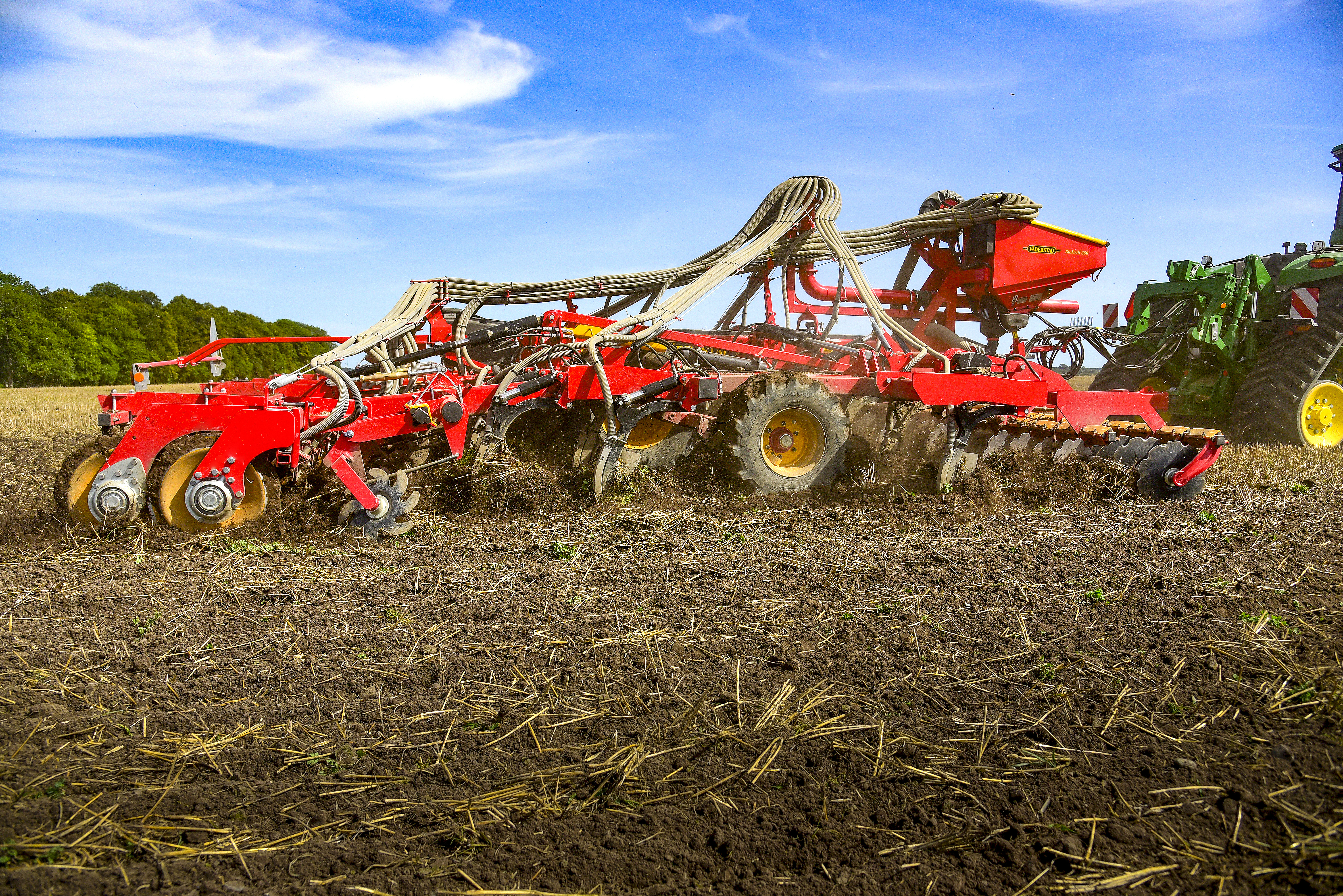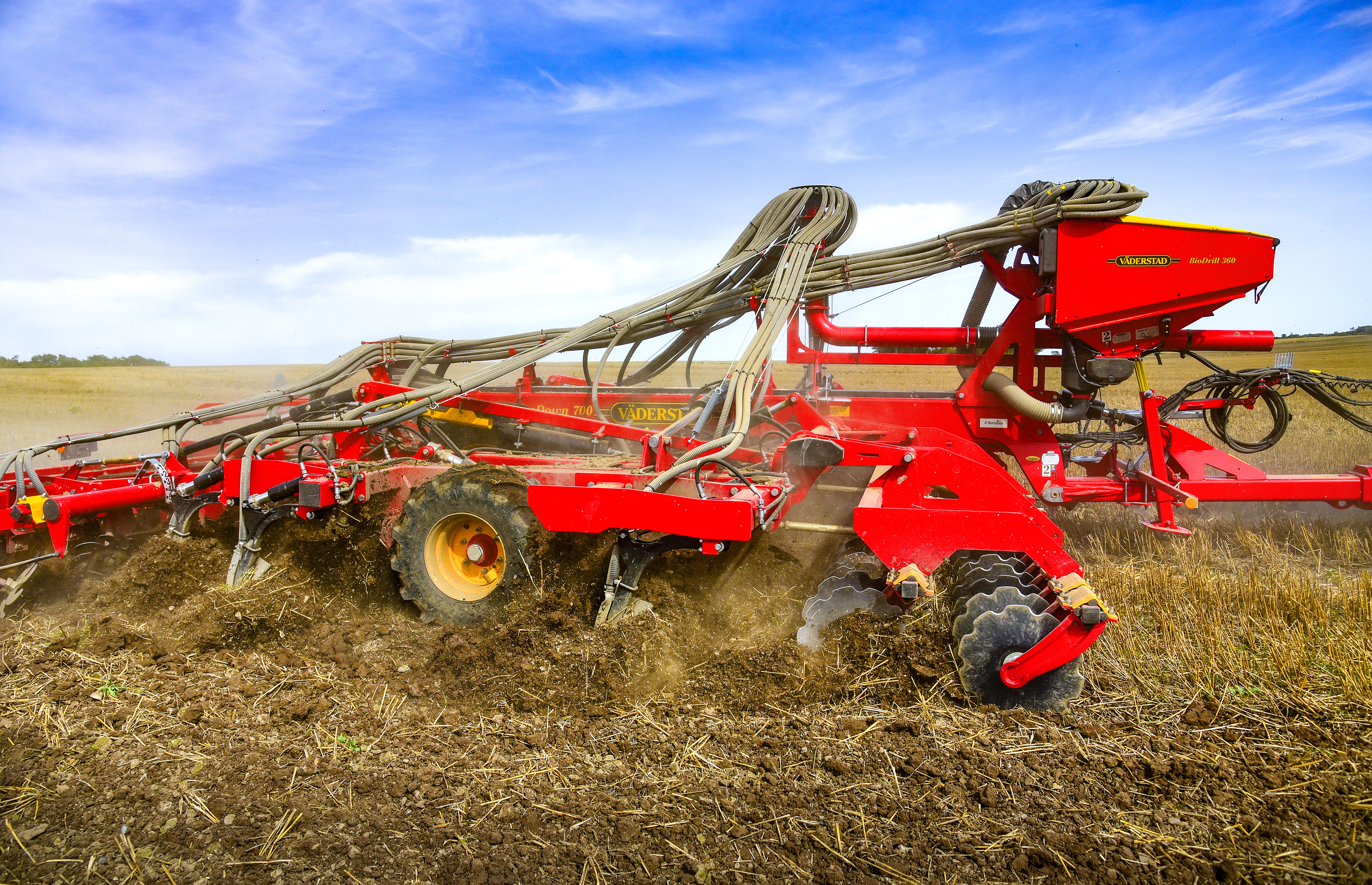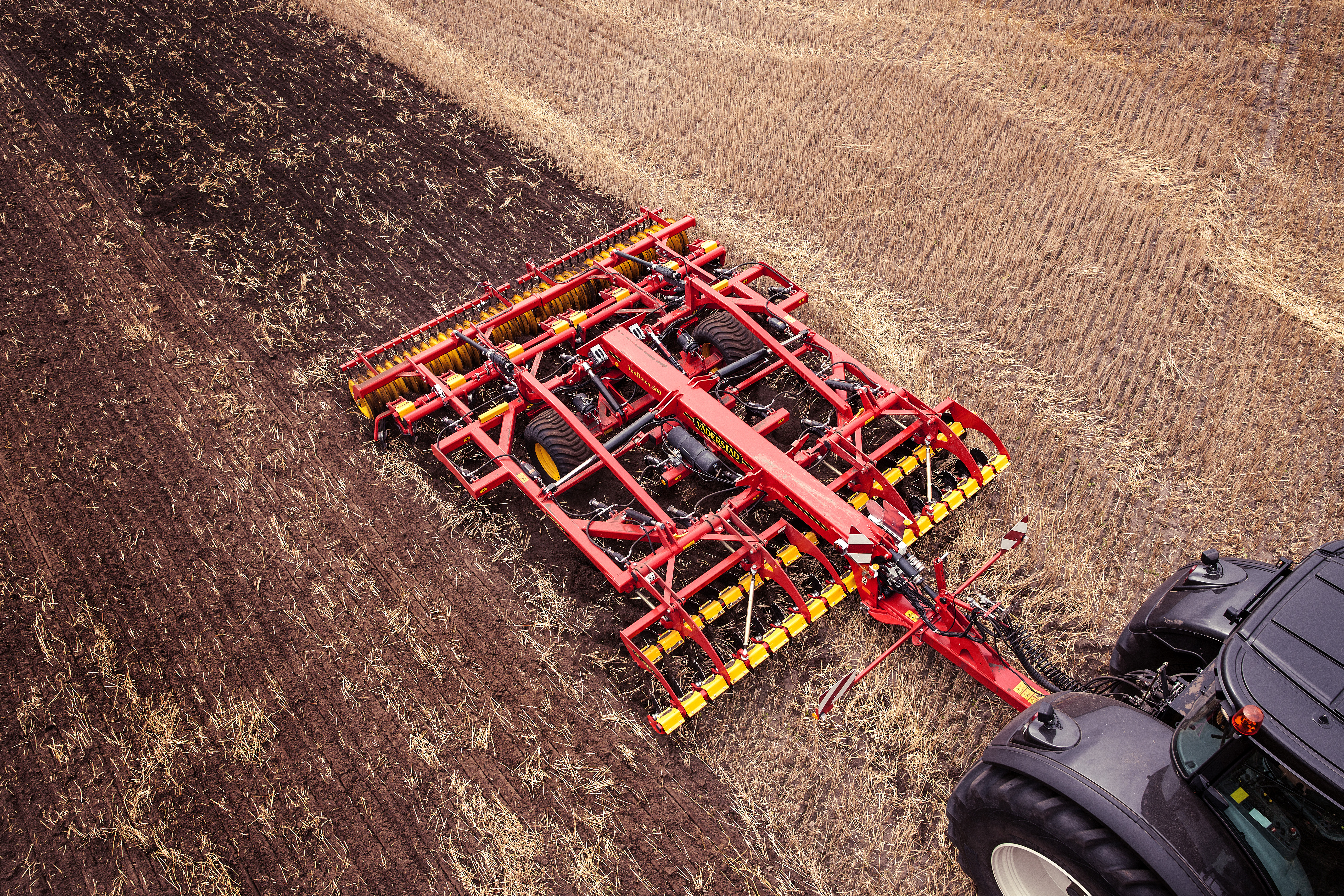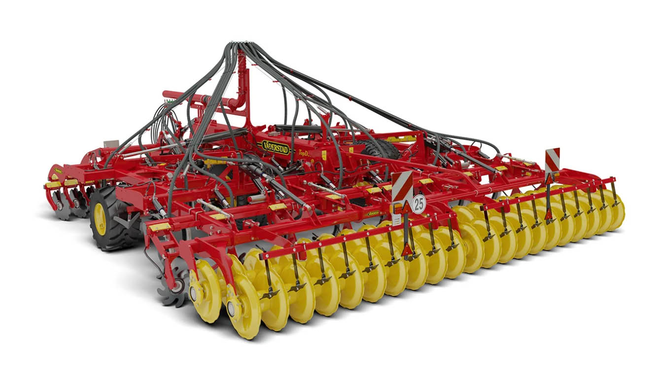 The Väderstad TopDown is a high-intensity cultivator designed to perform both shallow full-width cultivation and deep soil loosening in a single pass.