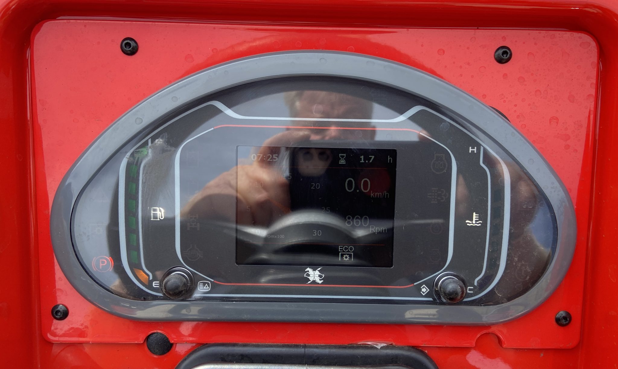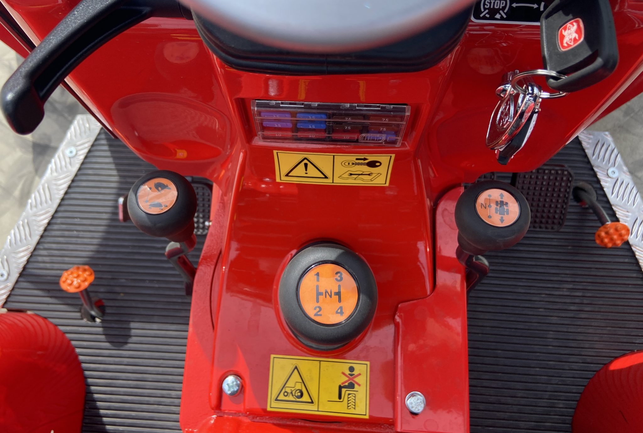 RGS Rev-Guide System, is the AC reversible driving system on a rotating turret which inverts the driving direction in just a few seconds in order to work efficiently with towed or frontal equipment. Simply turn the seat/steering wheel/dash/pedal assembly 180 for an identical, but reverse, driving direction.