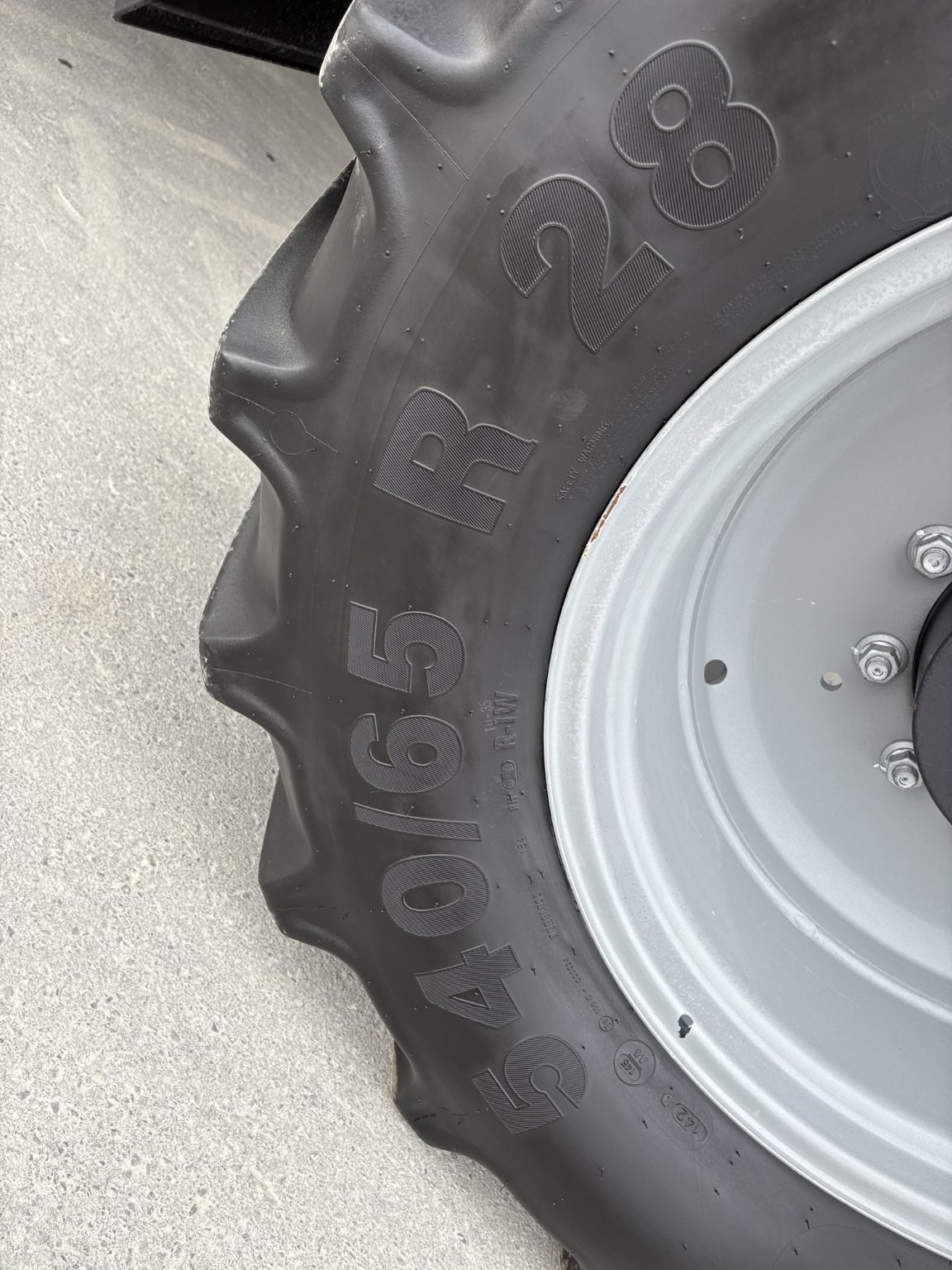 650/65R38 Rear tyres, 540/65R28 Front tyres