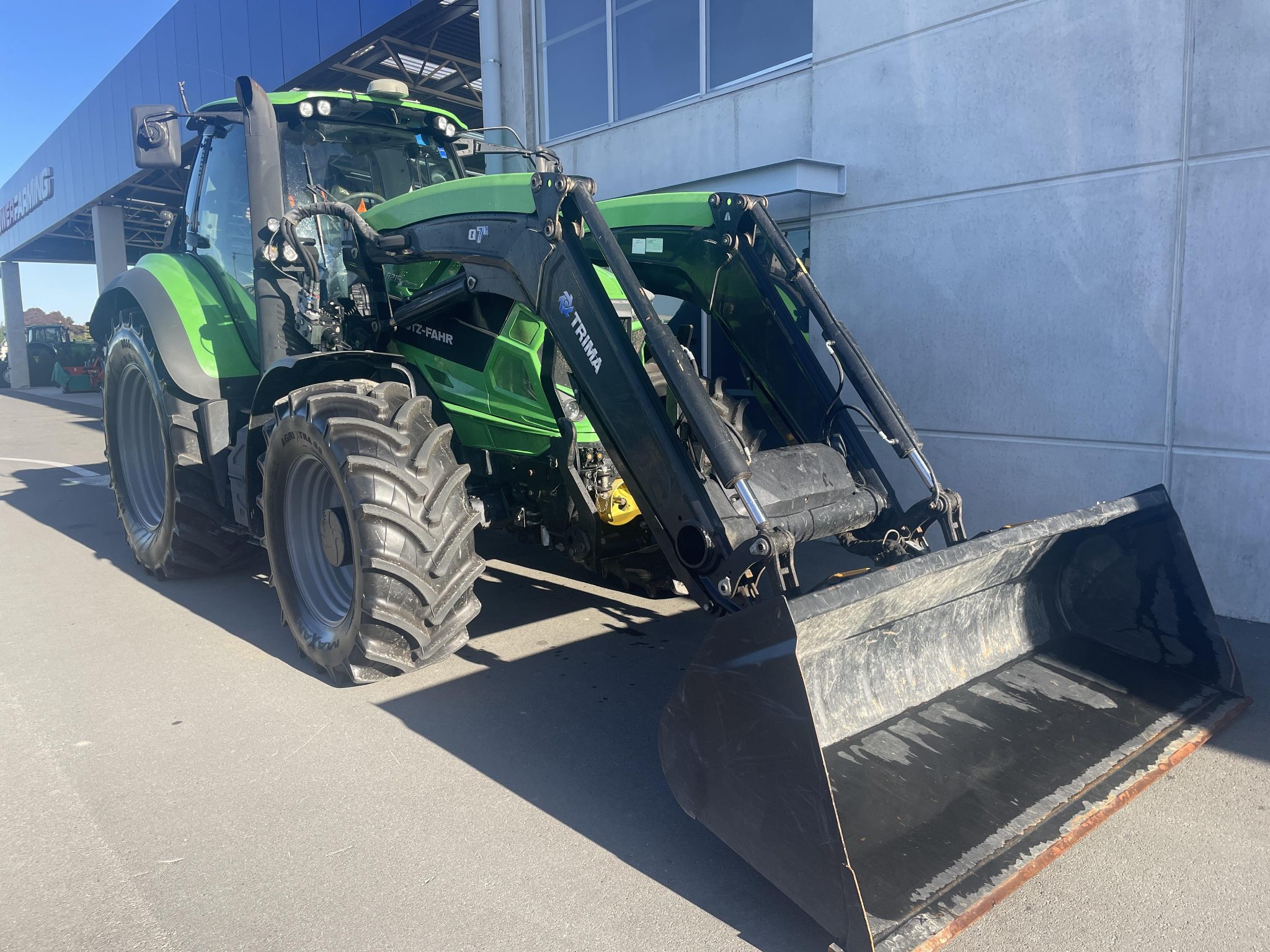 Excellent condition 6215RC with Trima Q7 front end loader. This 226hp unit has only done 3590 hours is fully speced with front linkage and PTO, big strong Trima Loader, electronic controls, 6 speed transmission with 3 modes, big hyd pump with CCLS, 50km/h and front axle suspension etc etc etc