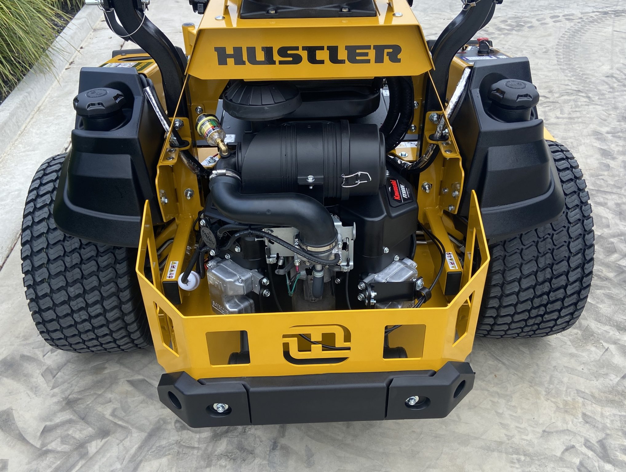 New Commercial Hustler HyperDrive 72 R/D Mowing Deck, Built in USA, powered by a Kawasaki FX Series 35hp Big Block V-Twin engine, Steel fabricated deck, Commercial heavy duty serviceable dual hydrostatic motors, upto 26kph mowing speed, 43L fuel capacity,