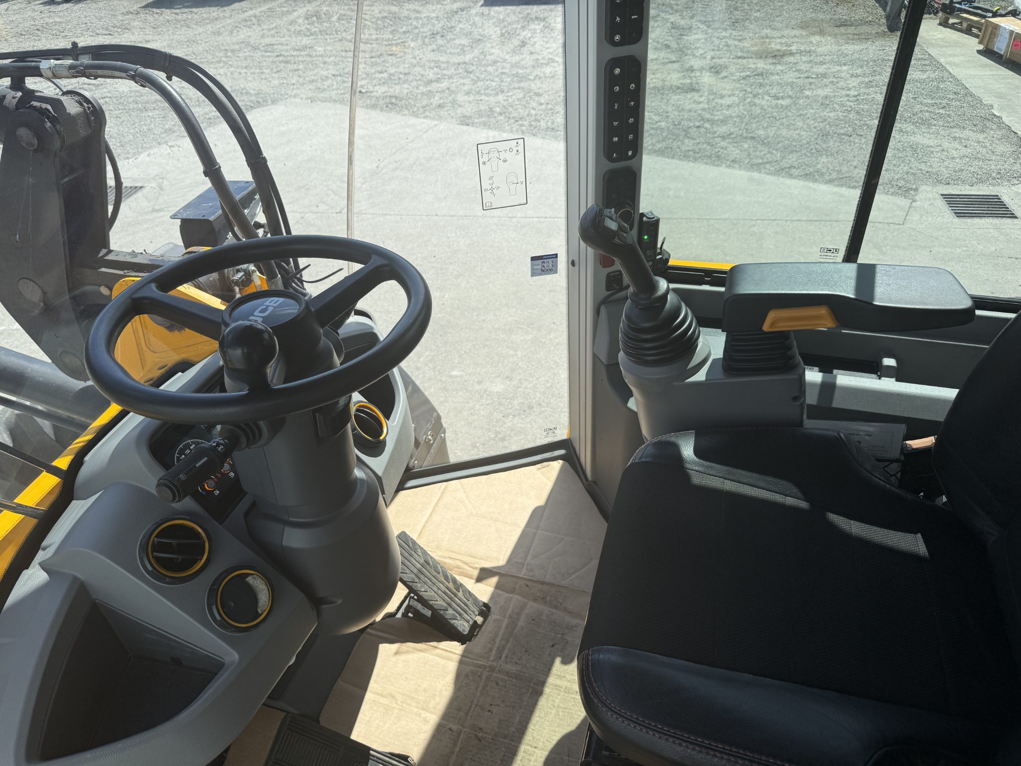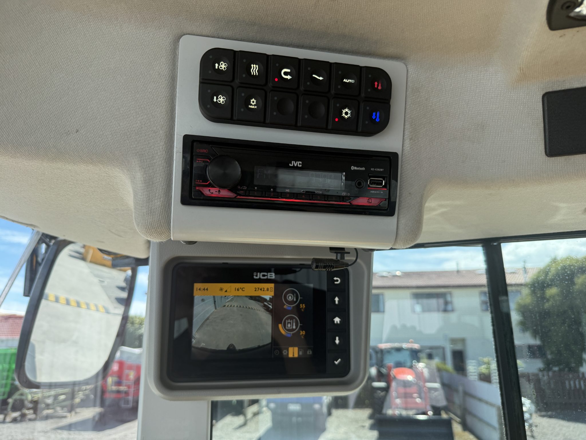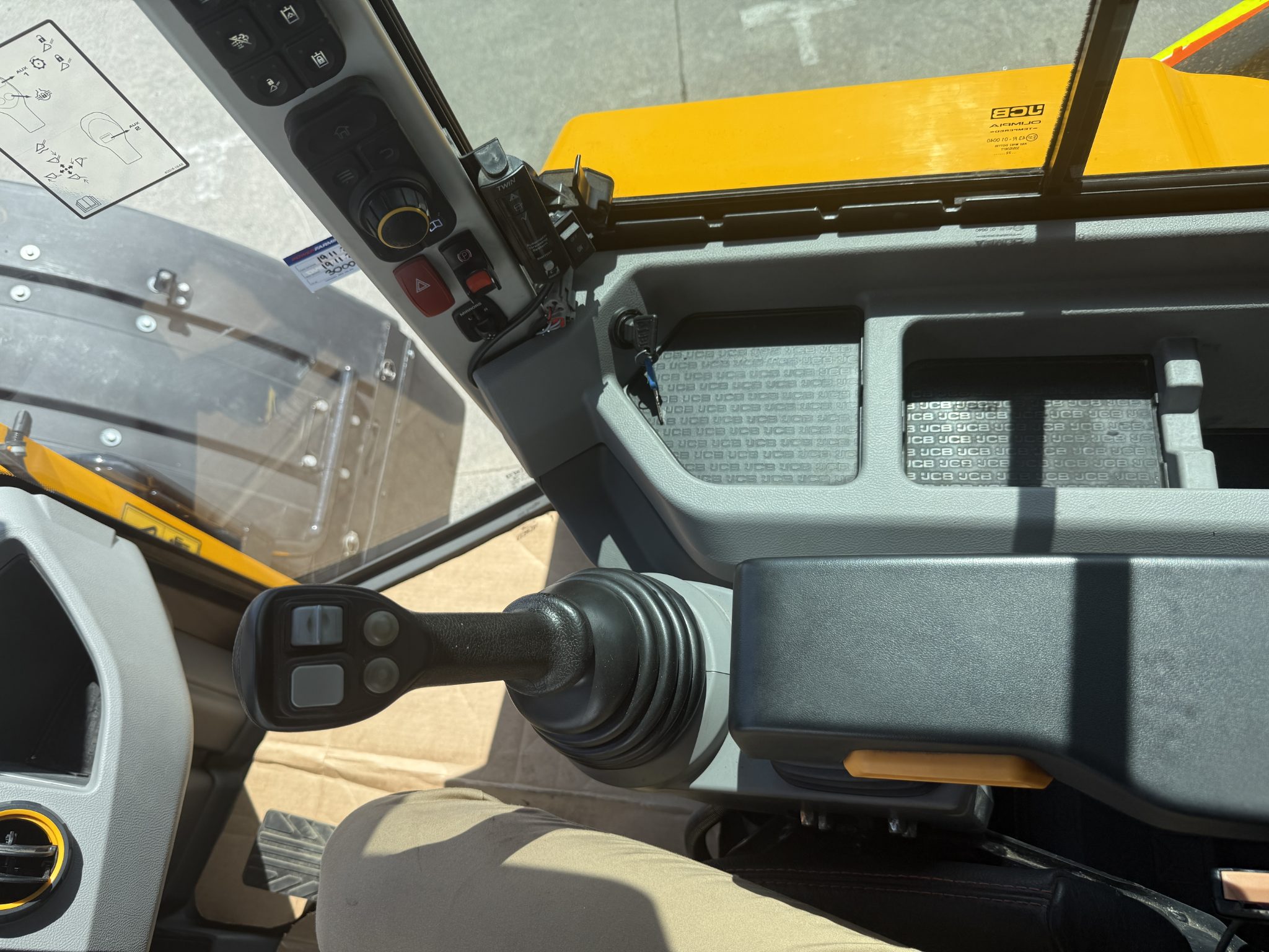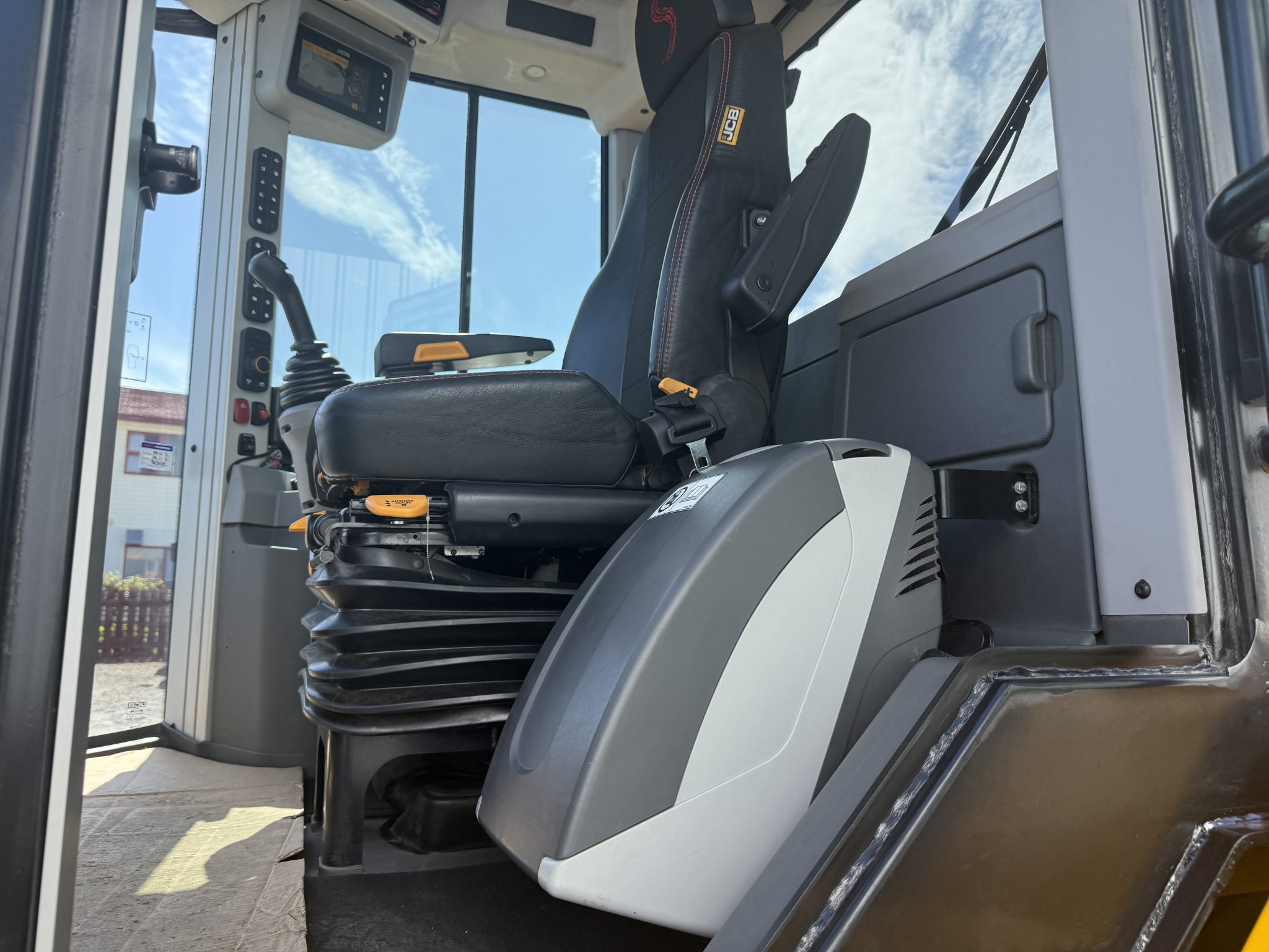 JCB Command Plus Cab (3.4m2) in Contractor Pro Spec with colour reversing camera, Deluxe cloth air suspension seat with heated base, cool box, climate control.