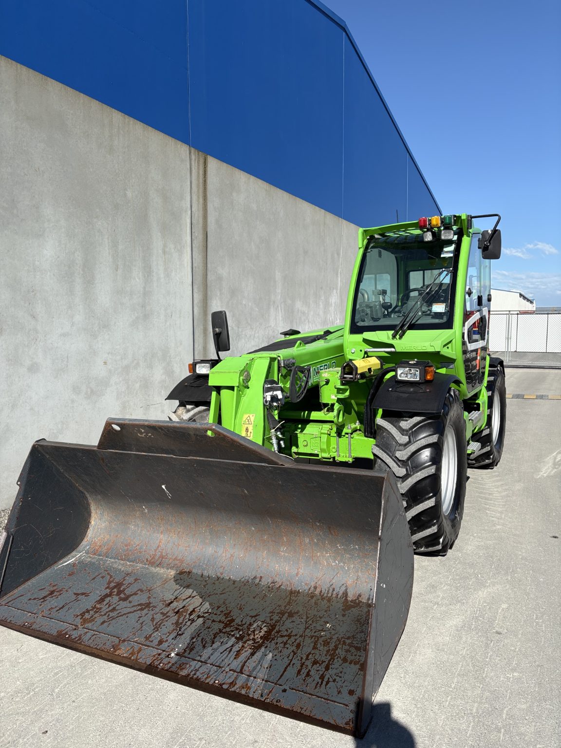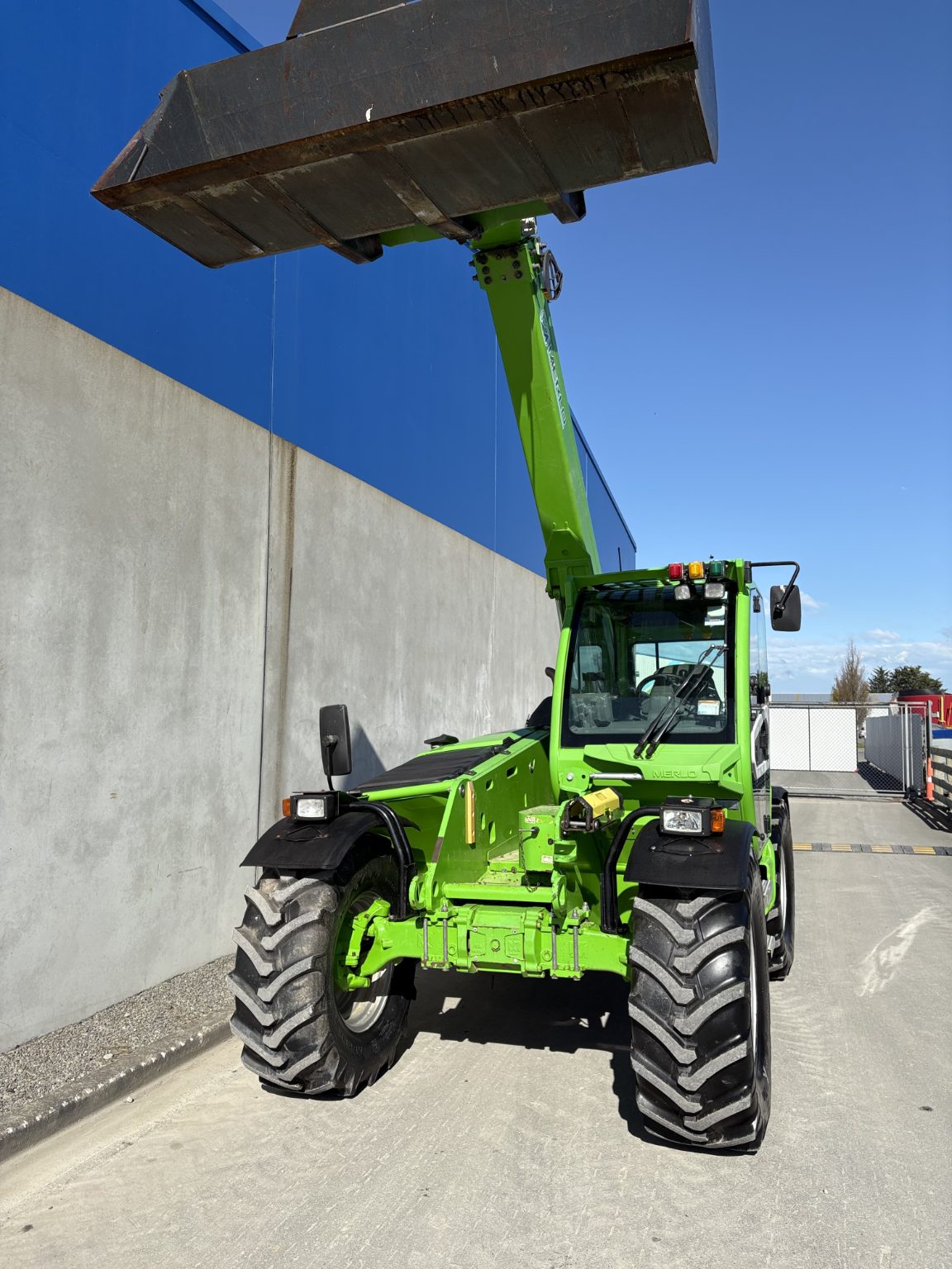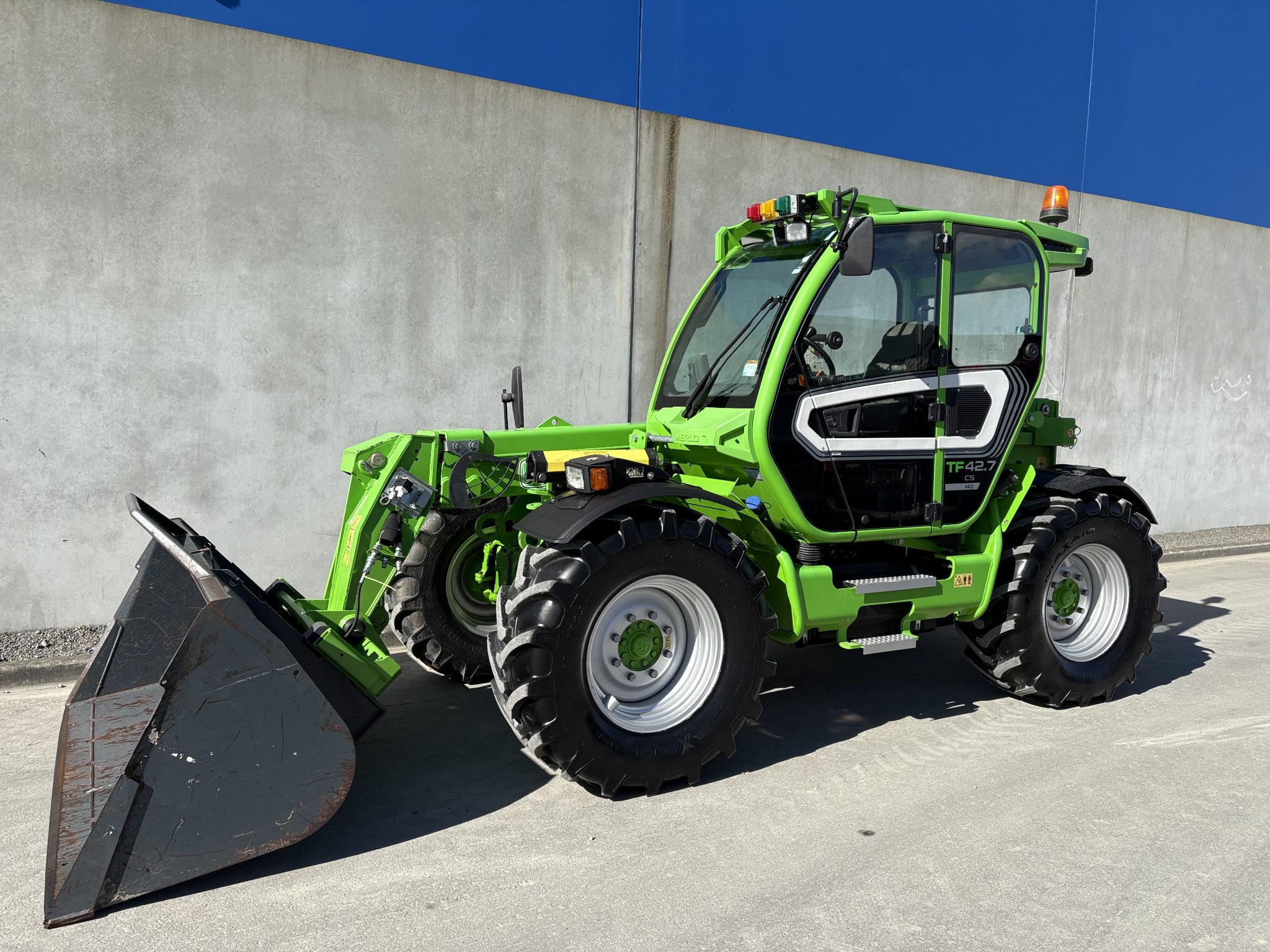 Merlo 42.7-140, Cabin suspension, boom suspension, 4.2ton to 7.0mtrs, new 460/70R24 tyres all round, Merlo bucket, 140hp, two rear remotes, tow hitch, this is a high capacity telehandler with amazing comfort and power.